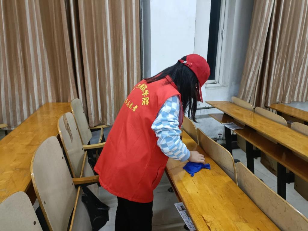 活动开始后,志愿者们耐心细致地用抹布和清洁剂仔细擦洗课桌和座椅,将污渍抹去,为同学们营造一个干净整洁的学习环境。
